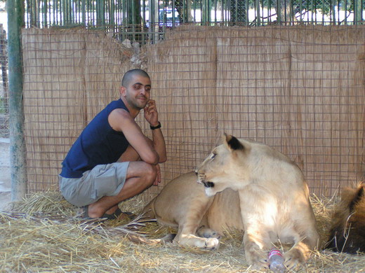 יום אחד הלכנו לגן חיות בלוחן. גן חיות שבו ניתנת למי שרוצה אפשרות להכנס לכלובים של אריות, נמרים, ברדלסים ועוד וללטף אותם. ולא הם לא מסוממים הם ממש מגיבים לסביבה. לדוגמא שהייתי בכלוב שבו חיים באושר לביאה ואריה. הלביאה שיחקה עם איזה בקבוק, והאריה שכב ונח. אני התישבתי על גבו וטפחתי בידי על ביטנו, כאשר לפתע הלביאה התרגזה עברה לעמדת תקיפה והתקרבה אליי. האחראי קפץ מהר ביננו והעסיק אותה עם חבית גדולה כחולה בזמן שאני מתרחק ... קנאית ... קטע די מפחיד, במיוחד שאני לא יודע מה מספר המקרים בשנה בהם מבקרים חוזרים הביתה לא עם כל החלקים.